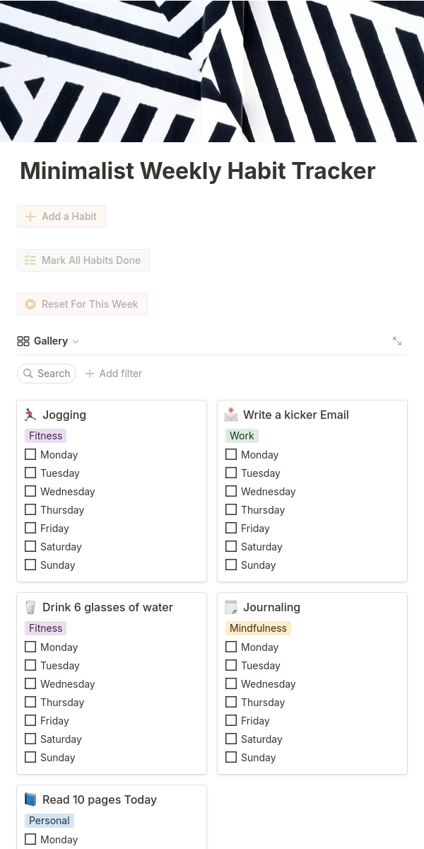 Minimalist Weekly Habit Tracker